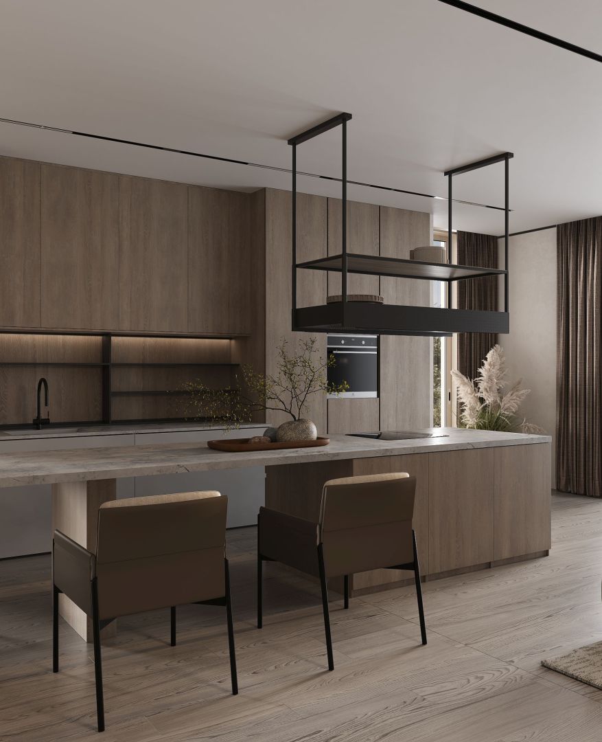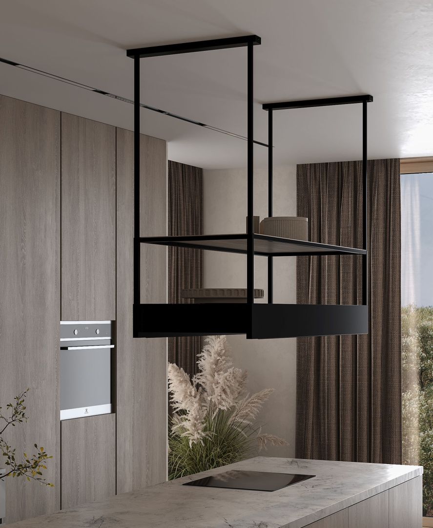 Величні розміри викликають визнання та захоплення! Витяжка розроблена з максимальною увагою до кожної деталі, доступна у розмірах 120, 150 та 180 см. Проста форма, з відтінком промислової елегантності зачаровує ідеально підібраними елементами та строго збереженими пропорціями. Ретельно спроектоване кріплення робить витяжку надзвичайно стійкою. У витяжці вмонтоване енергозберігаюче освітлення у вигляді світлодіодних стрічок, що є додатковим джерелом світла - воно чудово освітлює кухонний острів та стільницю. Плоска поверхня острівної витяжки може бути використана як полиця для ваших улюблених вазонів, часто використовуваних спецій або кулінарних книг. Декоративна полка, це додатковий простір для ваших фантазій. Дизайн сповнений елегантністю та стилем, економічний за формою, витриманий у приглушеній палітрі кольорів.