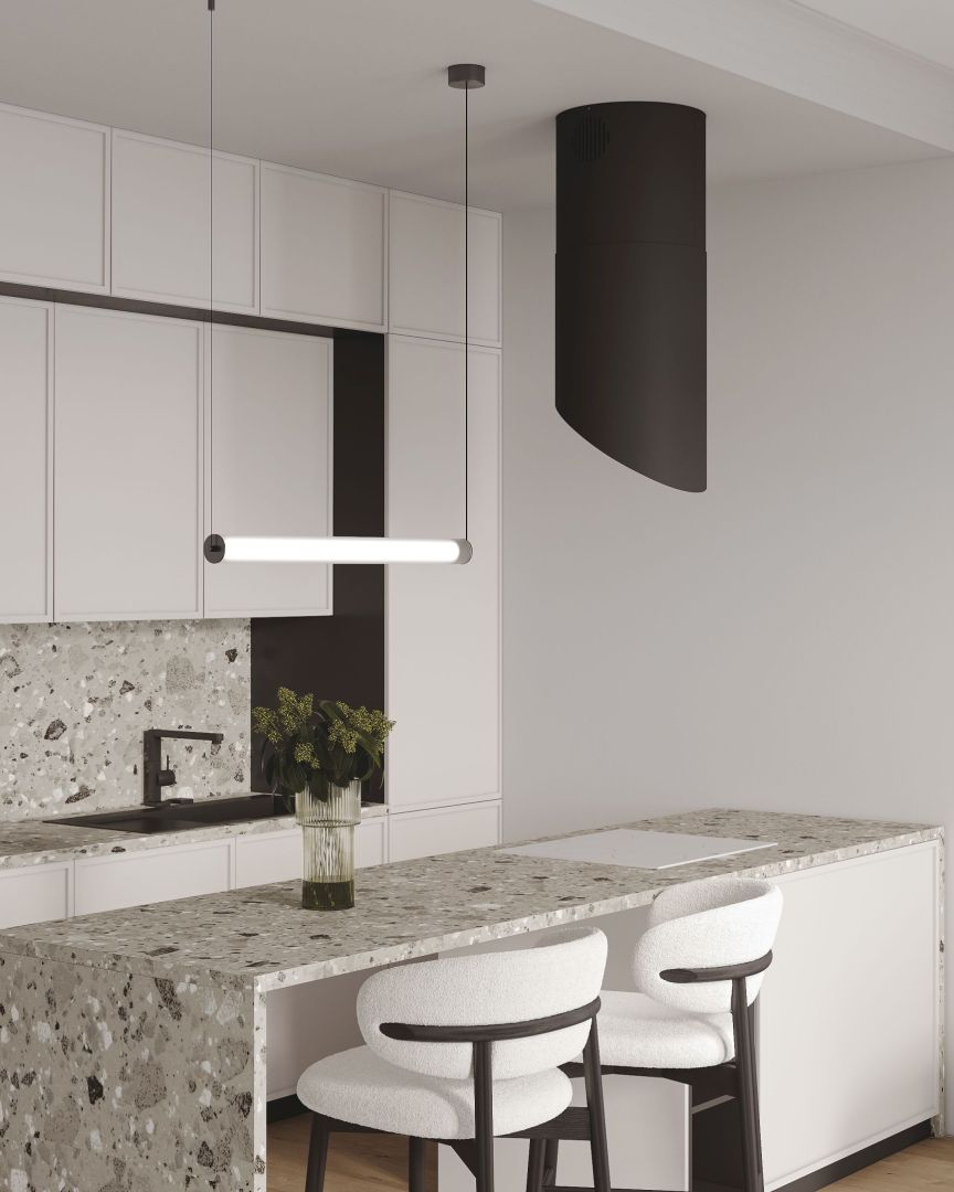 нове бачення острівної витяжки у сучасній кухні. Її унікальний зовнішній вигляд гармонійно поєднуються з іншими кухонними приладами, що робить модель HIRO новим трендом в дизайні Ващої кухні. Могутній очистний прилад швидко справиться з паром та запахами від приготування їжі та не створюватиме дискомфорту від шуму роботи завдяки технології Supersilent ®.