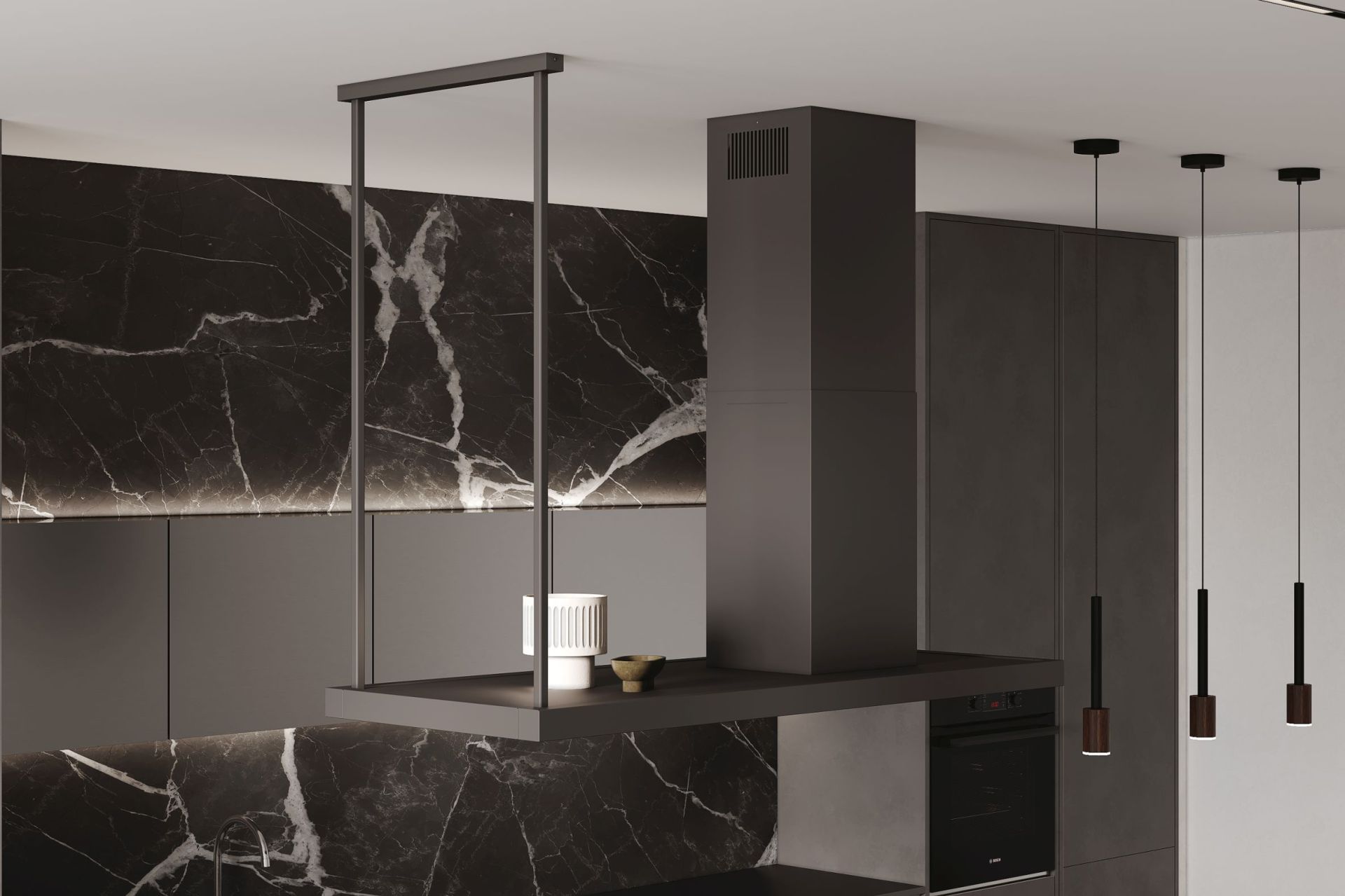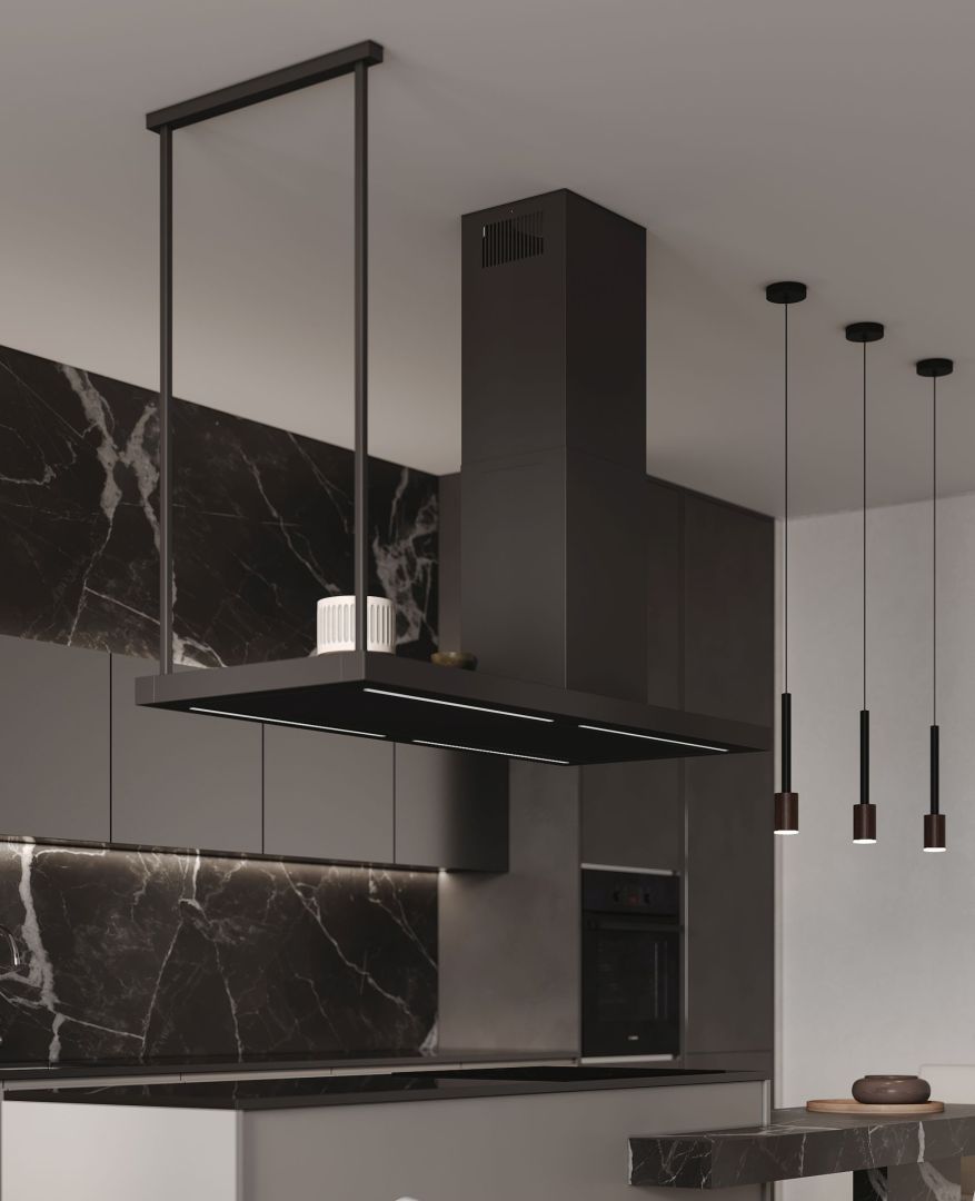 Величні розміри викликають визнання та захоплення! Витяжка розроблена з максимальною увагою до кожної деталі, доступна у розмірах 120, 150 та 180 см. Проста форма, з відтінком промислової елегантності зачаровує ідеально підібраними елементами та строго збереженими пропорціями. Ретельно спроектоване кріплення робить витяжку надзвичайно стійкою. У витяжці вмонтоване енергозберігаюче освітлення у вигляді світлодіодних стрічок, що є додатковим джерелом світла - воно чудово освітлює кухонний острів та стільницю. Плоска поверхня острівної витяжки може бути використана як полиця для ваших улюблених вазонів, часто використовуваних спецій або кулінарних книг. Дизайн сповнений елегантністю та стилем, економічний за формою, витриманий у приглушеній палітрі кольорів.