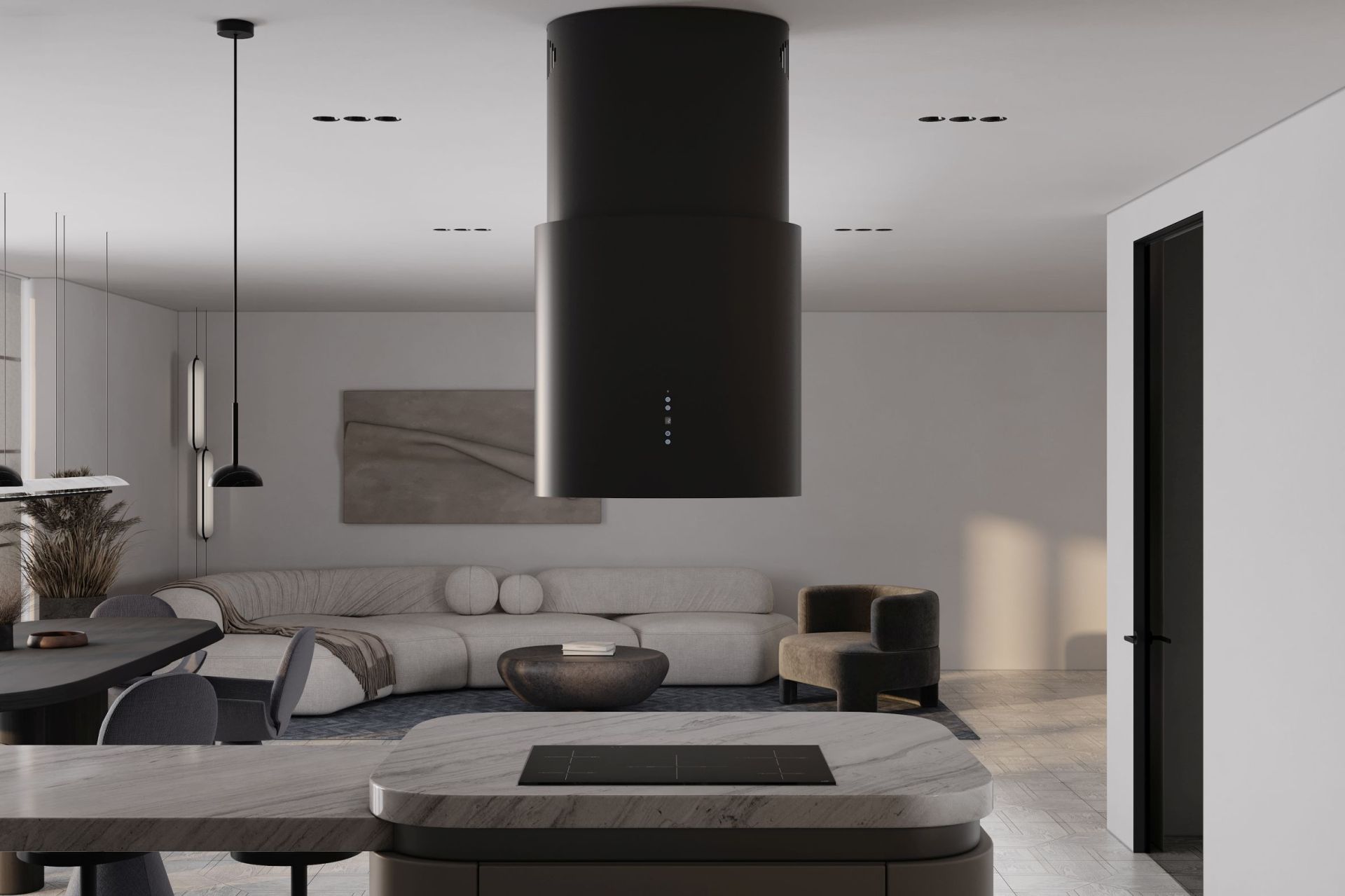 нове бачення острівної витяжки у сучасній кухні. Її унікальний зовнішній вигляд гармонійно поєднуються з іншими кухонними приладами, що робить модель OVAL новим трендом в дизайні Ващої кухні. Могутній очистний прилад швидко справиться з паром та запахами від приготування їжі та не створюватиме дискомфорту від шуму роботи завдяки технології Supersilent ®.