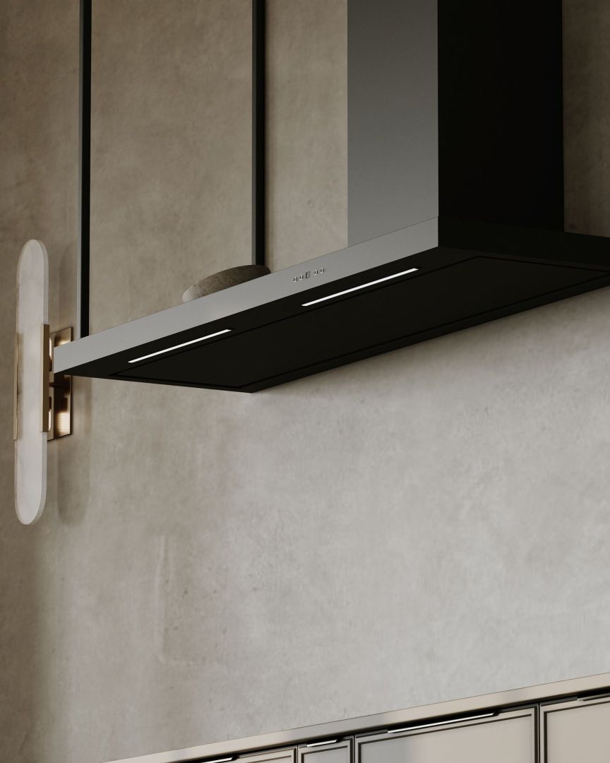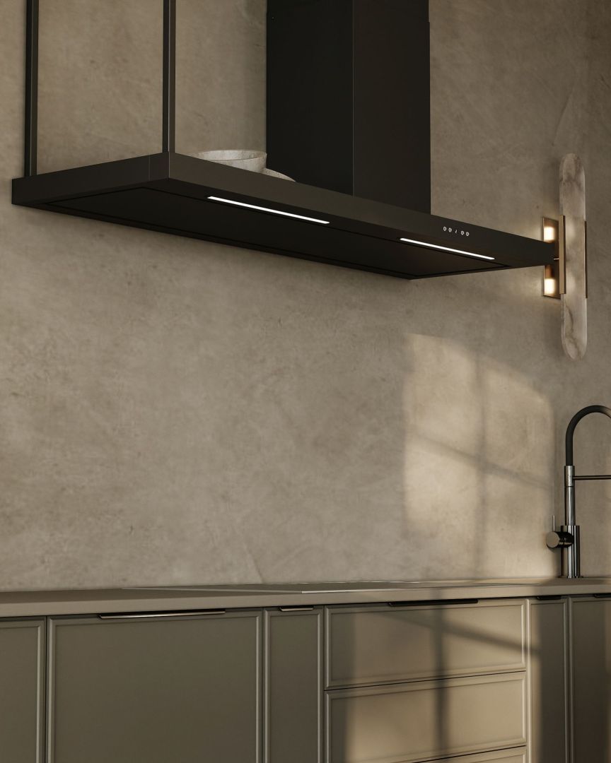 Величні розміри викликають визнання та захоплення! Витяжка розроблена з максимальною увагою до кожної деталі, доступна у розмірах 120 та 150 см. Проста форма, з відтінком промислової елегантності зачаровує ідеально підібраними елементами та строго збереженими пропорціями. Ретельно спроектоване кріплення робить витяжку надзвичайно стійкою. У витяжці вмонтоване енергозберігаюче освітлення у вигляді світлодіодних стрічок, що є додатковим джерелом світла - воно чудово освітлює стільницю. Плоска поверхня острівної витяжки може бути використана як полиця для ваших улюблених вазонів, часто використовуваних спецій або кулінарних книг. Дизайн сповнений елегантністю та стилем, економічний за формою, витриманий у приглушеній палітрі кольорів.