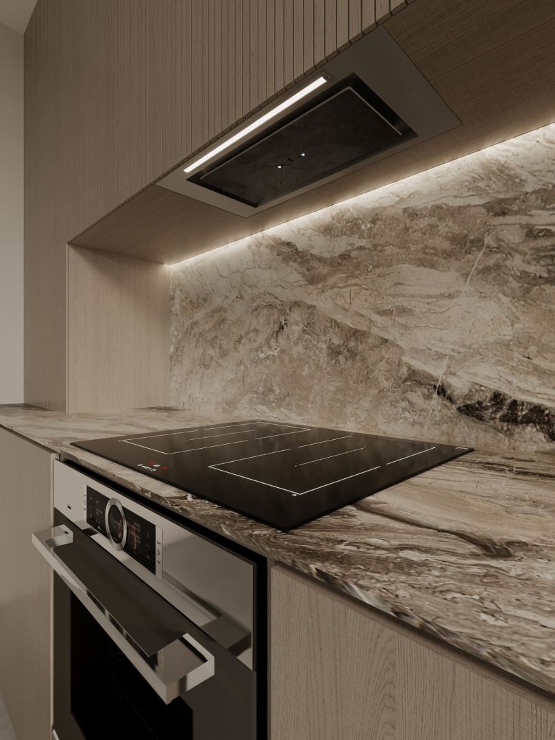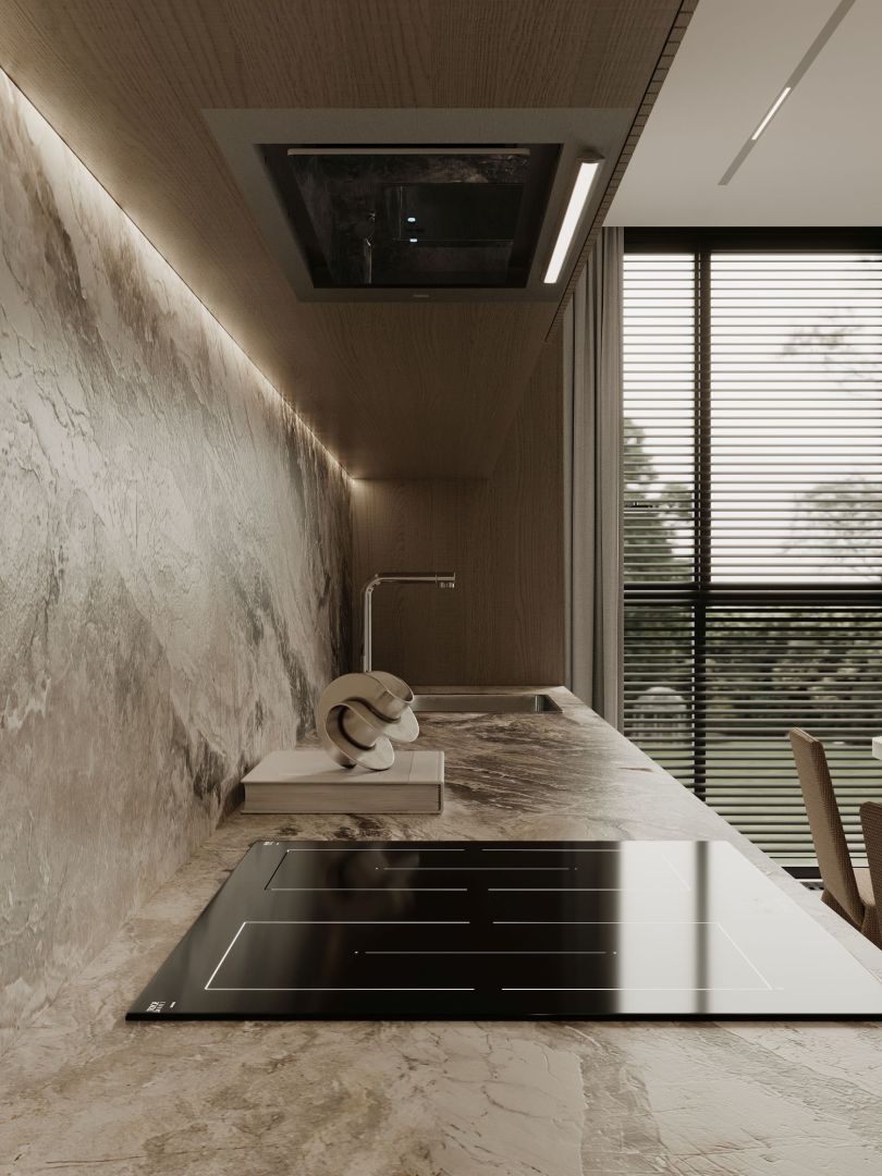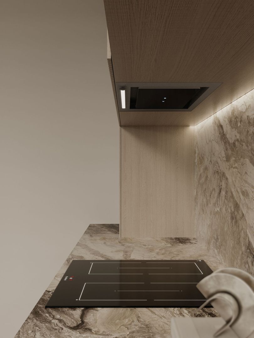 Розміри витяжки ідеально вписуються в кухонні меблі, тому простір навколо неї можна вільно використовувати для інших речей. Відкривши шафу, ви побачите красиву побутову техніку. Все, від передньої панелі до корпусу турбіни, виготовлено з нержавіючої сталі, естетично просто і красиво. Витяжка надзвичайно проста в обслуговуванні. Все, що вам потрібно, це мікрофібра з очищувачем поверхні INOX.
