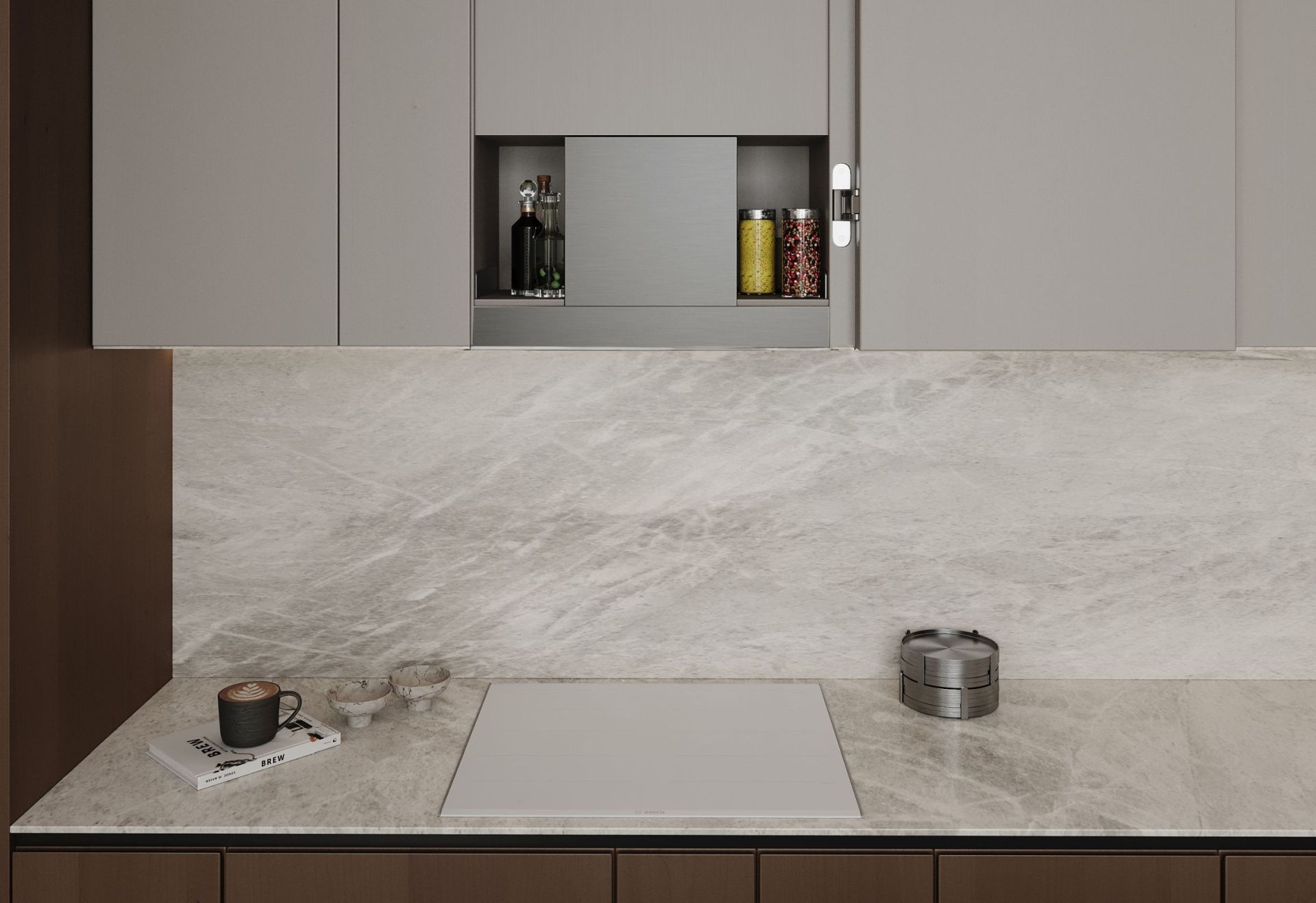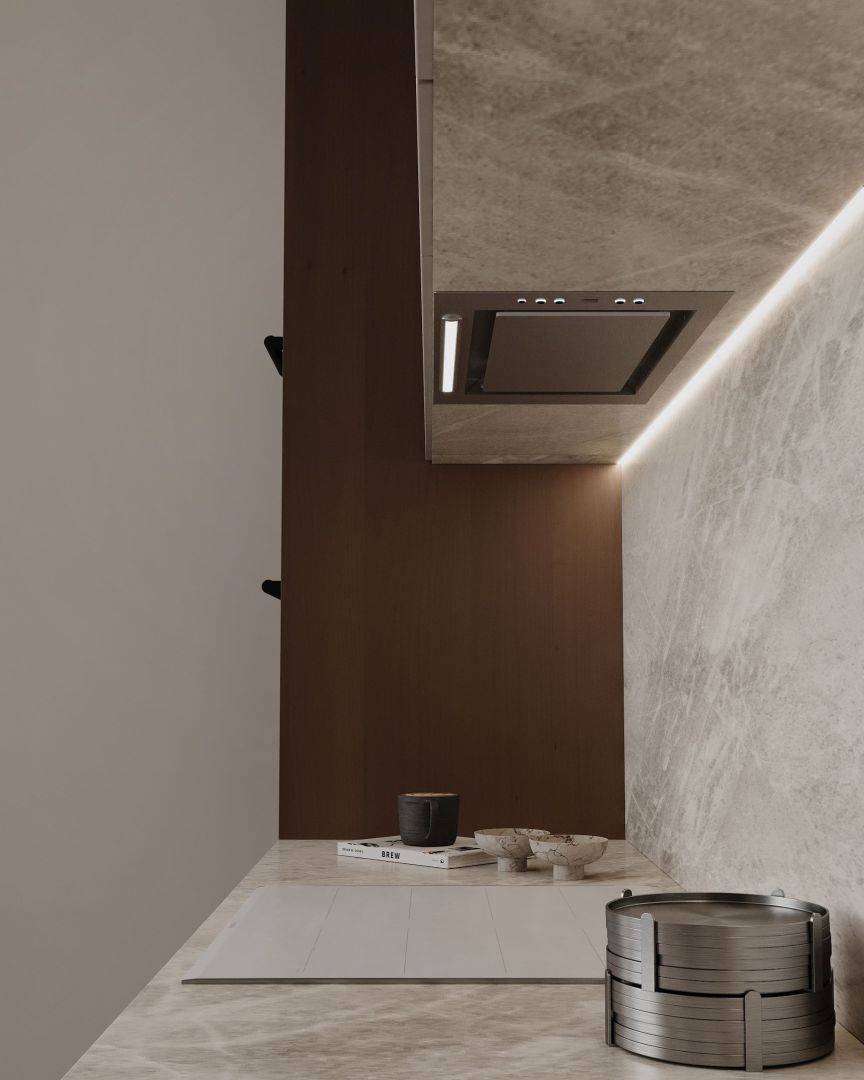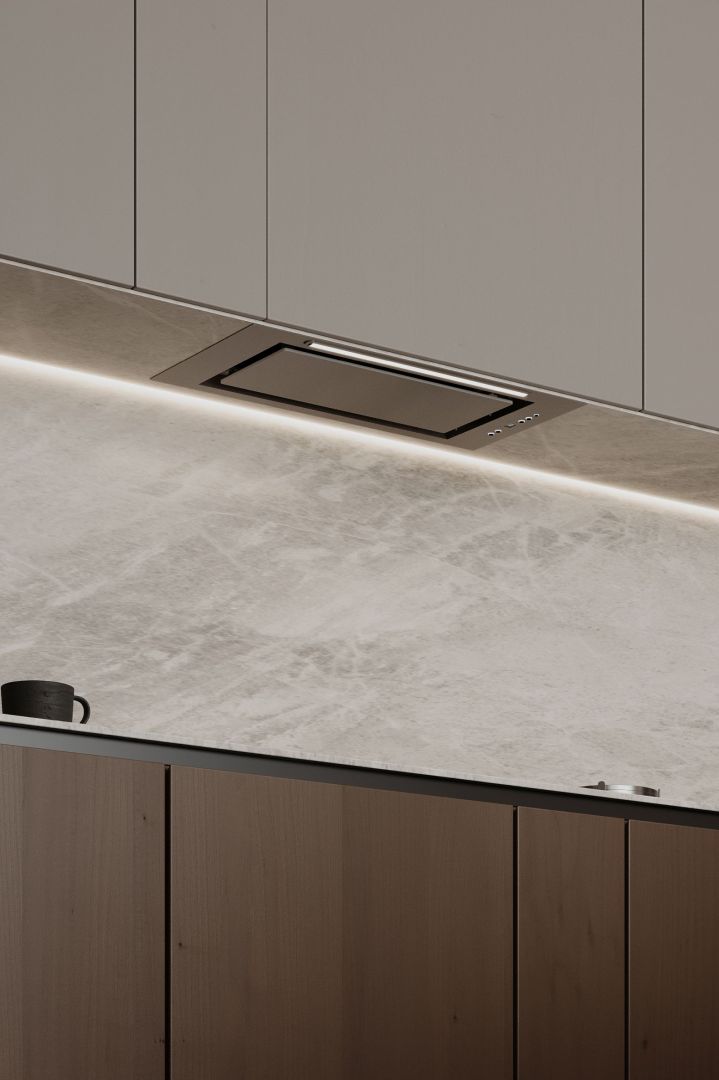 Розміри витяжки ідеально вписуються в кухонні меблі, тому простір навколо неї можна вільно використовувати для інших речей. Відкривши шафу, ви побачите красиву побутову техніку. Все, від передньої панелі до корпусу турбіни, виготовлено з нержавіючої сталі, естетично просто і красиво. Витяжка надзвичайно проста в обслуговуванні. Все, що вам потрібно, це мікрофібра з очищувачем поверхні INOX.